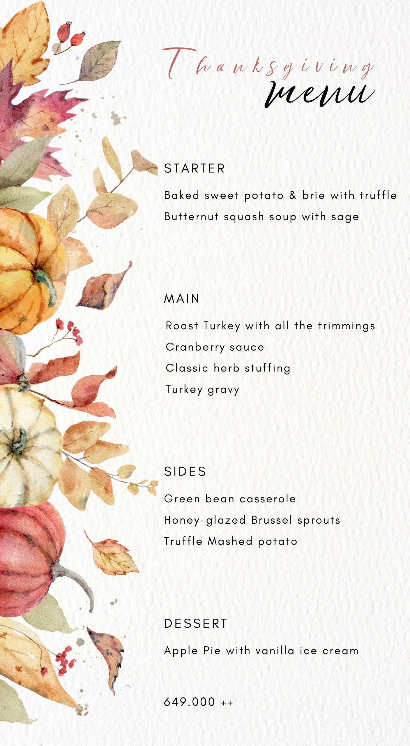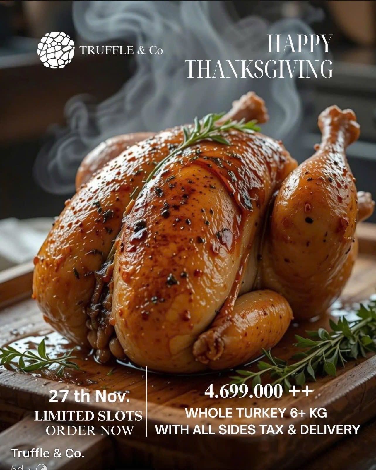 𝐓𝐡𝐚𝐧𝐤𝐬𝐠𝐢𝐯𝐢𝐧𝐠 𝐃𝐢𝐧𝐧𝐞𝐫 𝐚𝐭 𝐓𝐫𝐮𝐟𝐟𝐥𝐞 & 𝐂𝐨 & 𝗧𝗵𝗮𝗻𝗸𝘀𝗴𝗶𝘃𝗶𝗻𝗴 𝗧𝘂𝗿𝗸𝗲𝘆 𝗱𝗲𝗹𝗶𝘃𝗲𝗿𝘆 Thứ Năm, ngày 27 tháng 11 sắp tới này, Truffle & Co. hân hạnh mang đến set menu đặc biệt được sáng tạo riêng cho mùa Lễ Tạ Ơn.Khởi đầu với món súp bí đỏ khai vị thanh ngọt, tiếp đến là món chính gà tây nướng phủ sốt nam việt quất đặc trưng, dùng với các món ăn kèm mang hương vị mùa thu. Khép lại bữa tiệc trọn vẹn với bánh táo nóng và kem vani ngọt ngào, mang đến dư vị ấm cúng khó quên. Hãy nhanh tay liên hệ với chúng tôi để được tư vấn và đặt chỗ tại 2 chi nhánh Mạc Thị Bưởi hoặc Phú Mỹ Hưng, quây quần và cùng nhau thưởng thức bữa tiệc khó quên tại nhà hàng. Nếu bạn muốn tổ chức tiệc tại nhà, Truffle & Co. vẫn sẵn sàng mang trọn hương vị đến tận nơi với gà tây nướng vàng ruộm và các món ăn kèm, chuẩn bị đóng gói sẵn sàng và đảm bảo chất lượng thơm ngon để khách yêu thưởng thức.Đặt gà ngay từ hôm nay vì số lượng có hạn!This Thursday, November 27, we’re offering a special set menu crafted just for the holiday. A warm seasonal starter with our signature roasted Turkey with cranberry glaze and autumn sides. Apple pie with vanilla ice cream dessert with a cozy finish.Reserve your table with us — seats are limited! Let’s gather, give thanks, and enjoy good company and great food together at our Mac Thi Buoi and Phu My Hung branches. Planning to host Thanksgiving at home this year? Let Truffle & Co. bring the feast to you with our perfectly roasted Turkey, ready to serve and enjoy.Order now for home delivery, as quantities are limited!------------------------