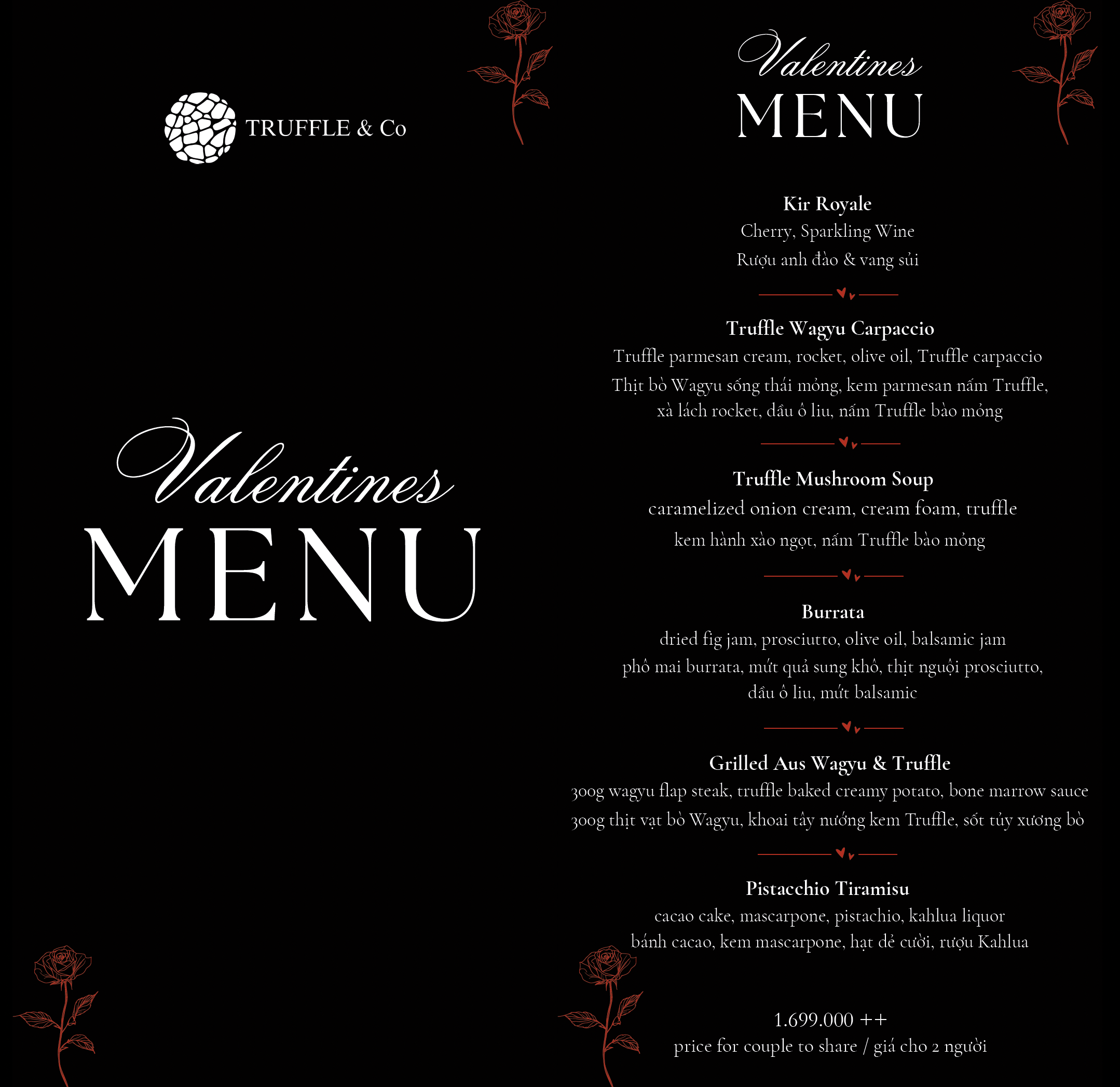 Don't wait until the last minute to plan your perfect evening. Contact via visit our website www.truffleco.vn to place your deposit and confirm your Valentine’s date at Truffle & Co.
