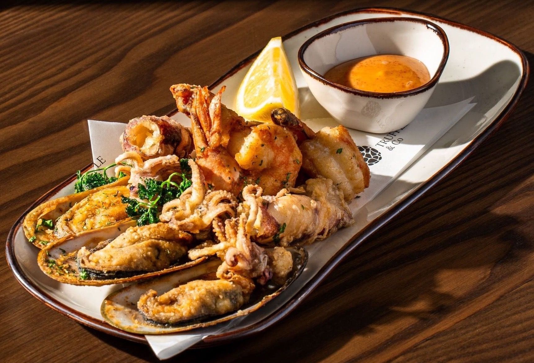 Mixed Seafood Fritters with spicy mayo dip